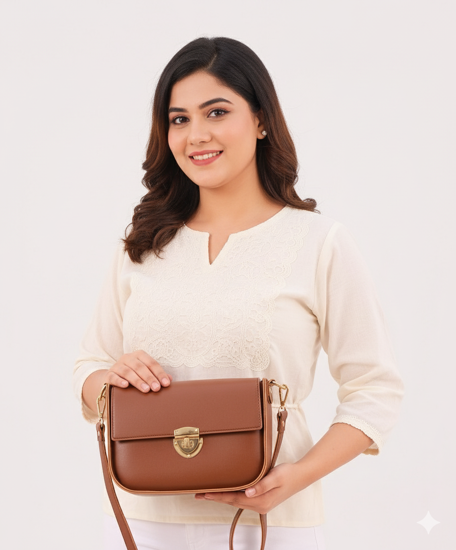 You can use is crossbody or sholder bag use The Cognac Small bag features 3 spacious compartments, including one with a secure zip lock and two with magnetic locks. With the option to use it as a crossbody or shoulder bag, this versatile accessory offers both style and functionality. Perfect for on-the-go professionals.