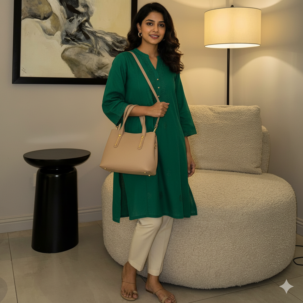Introducing the Skin Bag, designed for the modern woman. This Women Tutti Handbag boasts a structured design and comfortable handles for everyday use. With its classic and elegant style, it's perfect for both casual and formal occasions. Stay stylish and organized with its spacious and functional interior.
